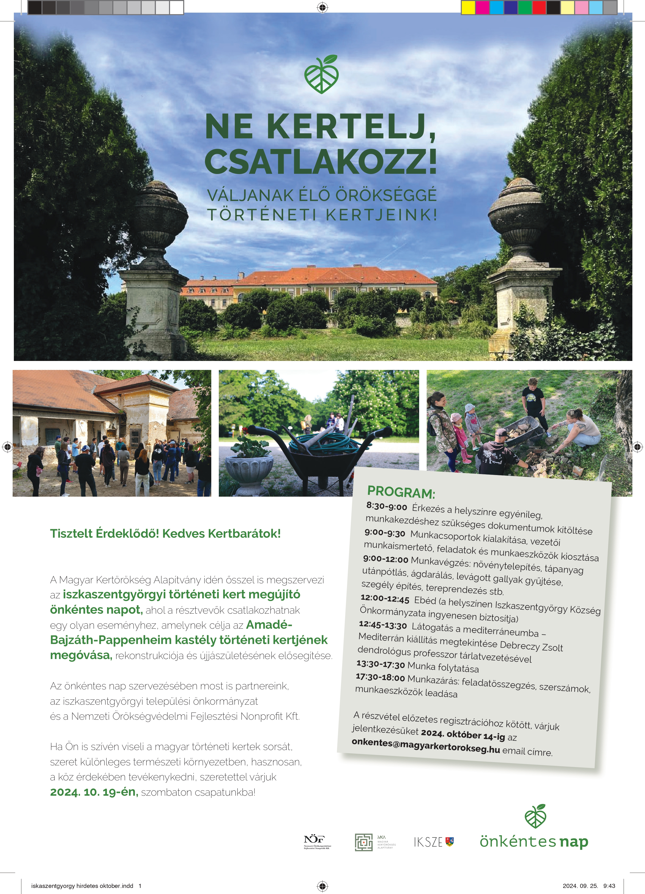 A Magyar Kertörökség Alapítvány idén ősszel is megszervezi az iszkaszentgyörgyi történeti kert megújító önkéntes napot, ahol a résztvevők csatlakozhatnak egy olyan eseményhez, amelynek célja az Amadé-Bajzáth-Pappenheim kastély történeti kertjének megóvása